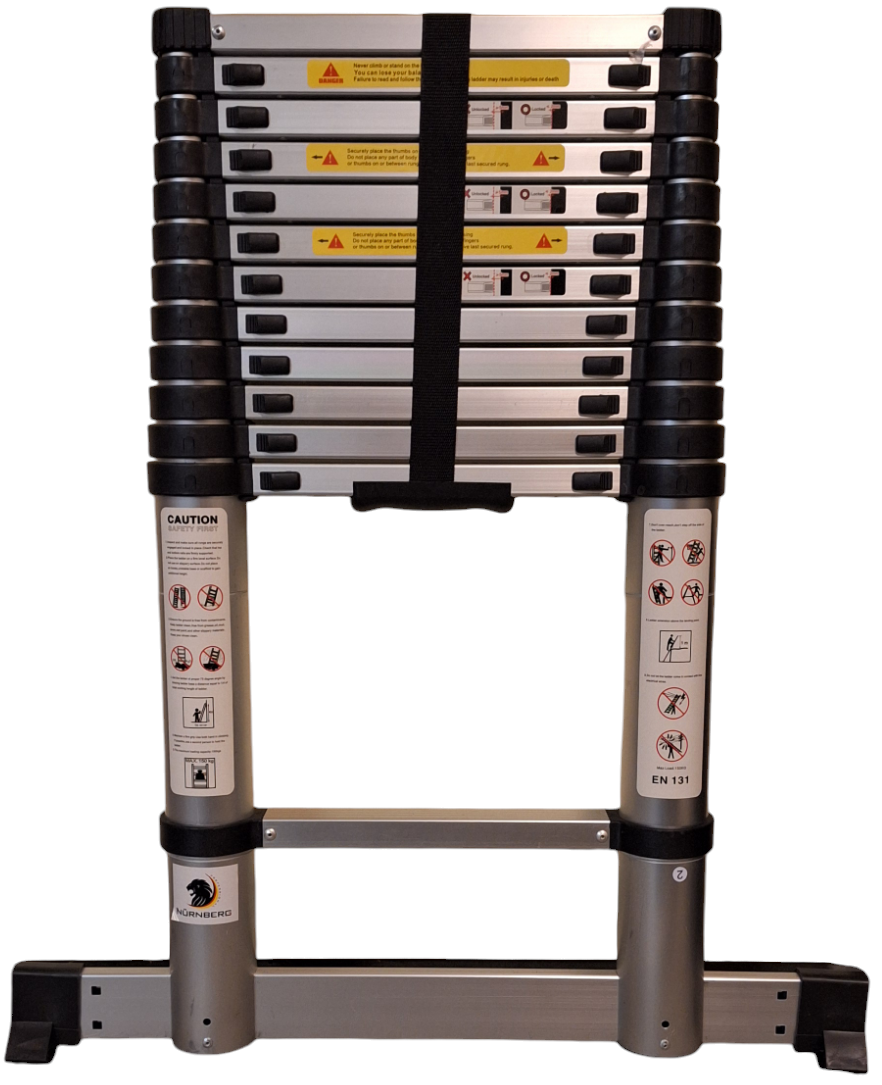Telescoopladder 3.8mtr met onderbalk.