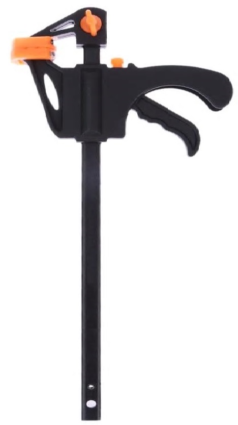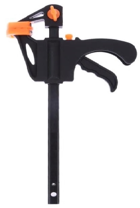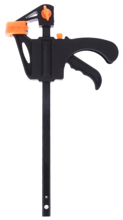 Met 1 hand bedienbare spanklem / lijmklem.