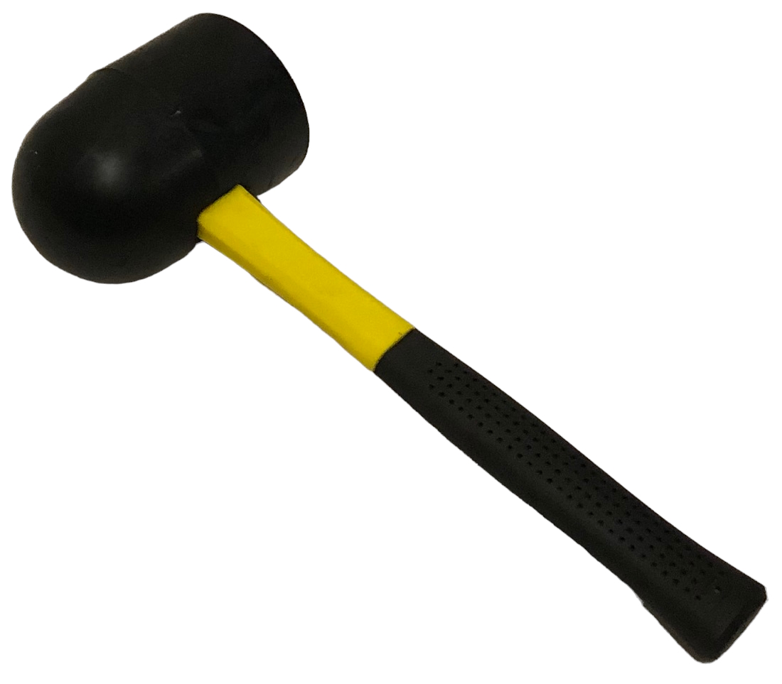 Zeer degelijke Rubberen Hamer met glasfiber steel en soft grip.